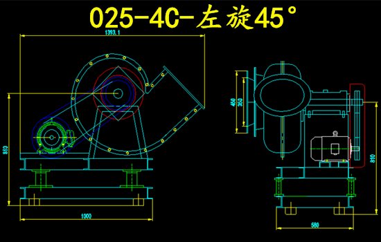產品名稱:4C,45°玻璃鋼離心風機,或2.5番玻璃鋼離心風機;