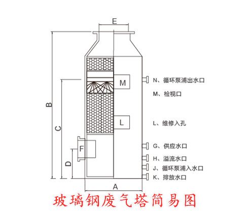 玻璃鋼廢氣處理塔的內部結構主要分為一級噴淋處理、二級噴淋處理并包括填料、廢氣球等添加物。