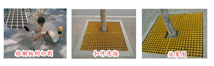 由于剛出模的玻璃鋼格柵板表面有一定的毛邊,需要進(jìn)行清理工作。然后按照護(hù)樹板的尺寸使用切割工具進(jìn)行切割。